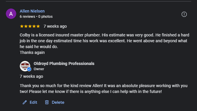 Hey, I’m Colby Oldroyd. I’m a licensed Master plumber who believes in doing solid work for a fair price. Whether it’s a small fix or a big project, I show up on time, diagnose the issue and provide potential solutions, and get it done right the first time. No pressure, no runaround-just honest plumbing from someone who cares about your home as much as you do.